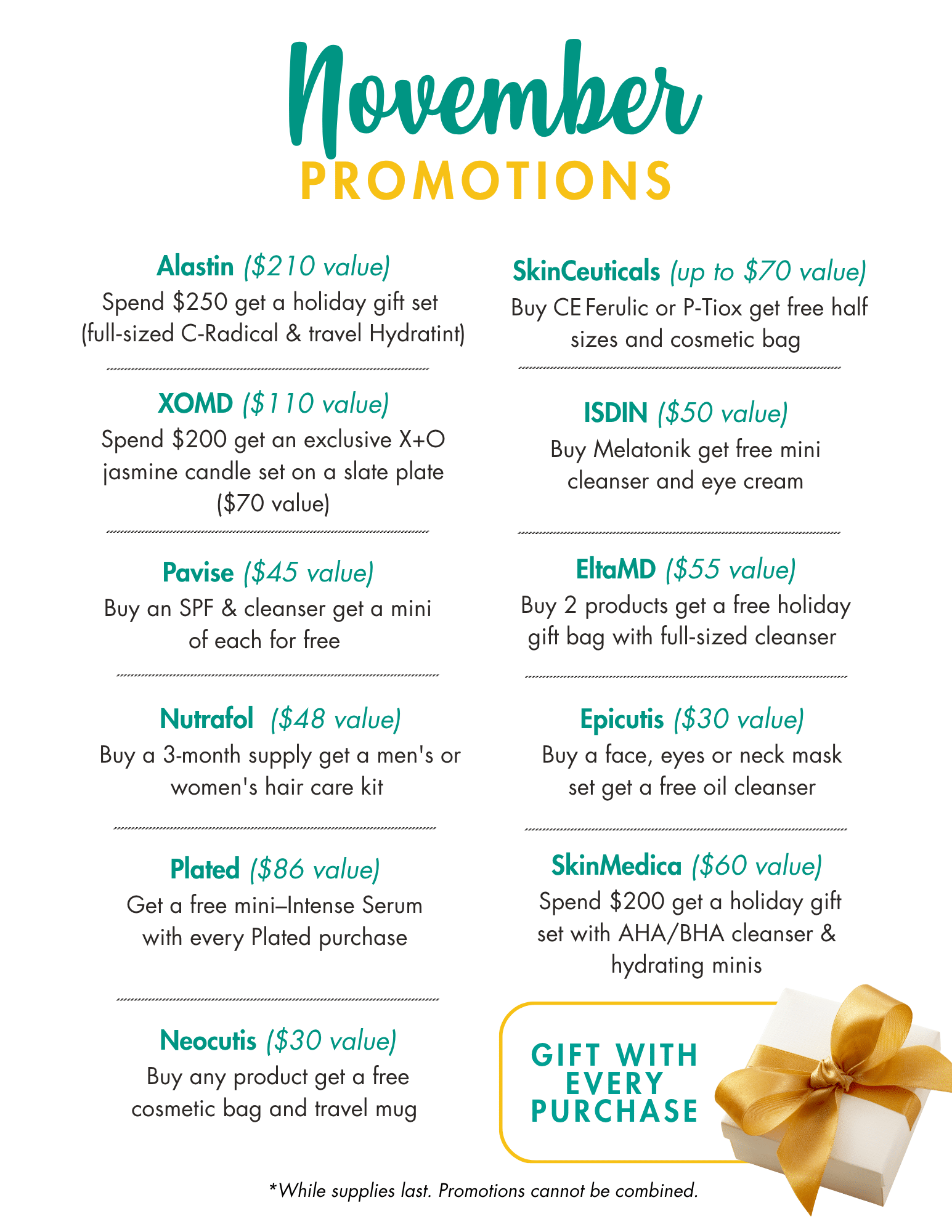 The first 3 attendees to schedule a combination treatment will receive 15% off their treatment, plus a complimentary skincare basket.*
