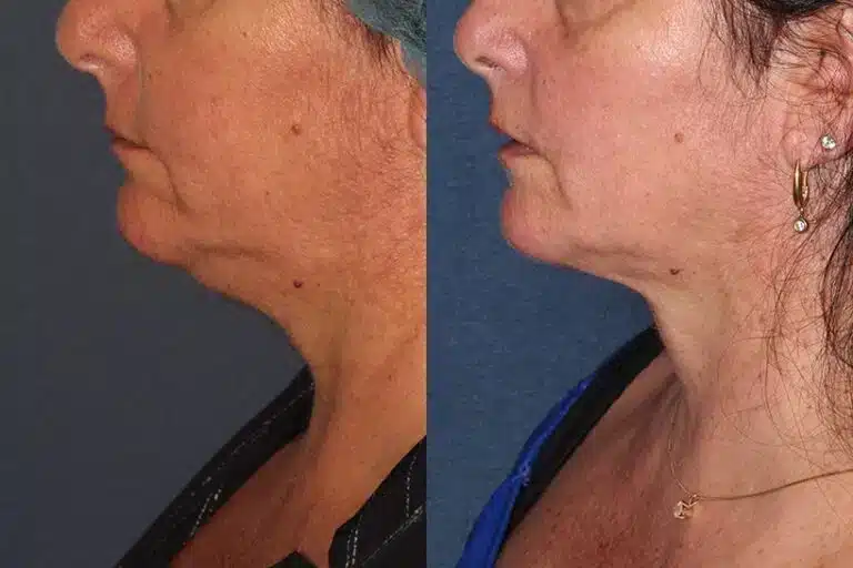 Before and After ThermiTight to address skin laxity under the chin and neck by Dr. Wu