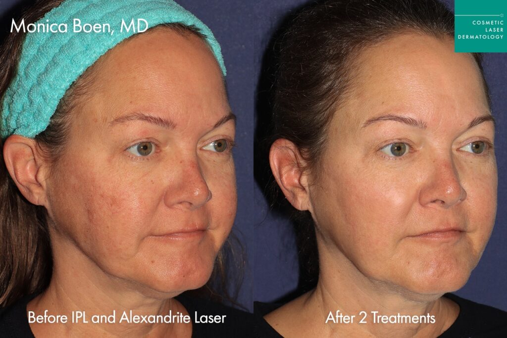 Recovery time is brief. Mild redness or darkening of pigment spots may occur temporarily, but patients can return to normal activities right away.